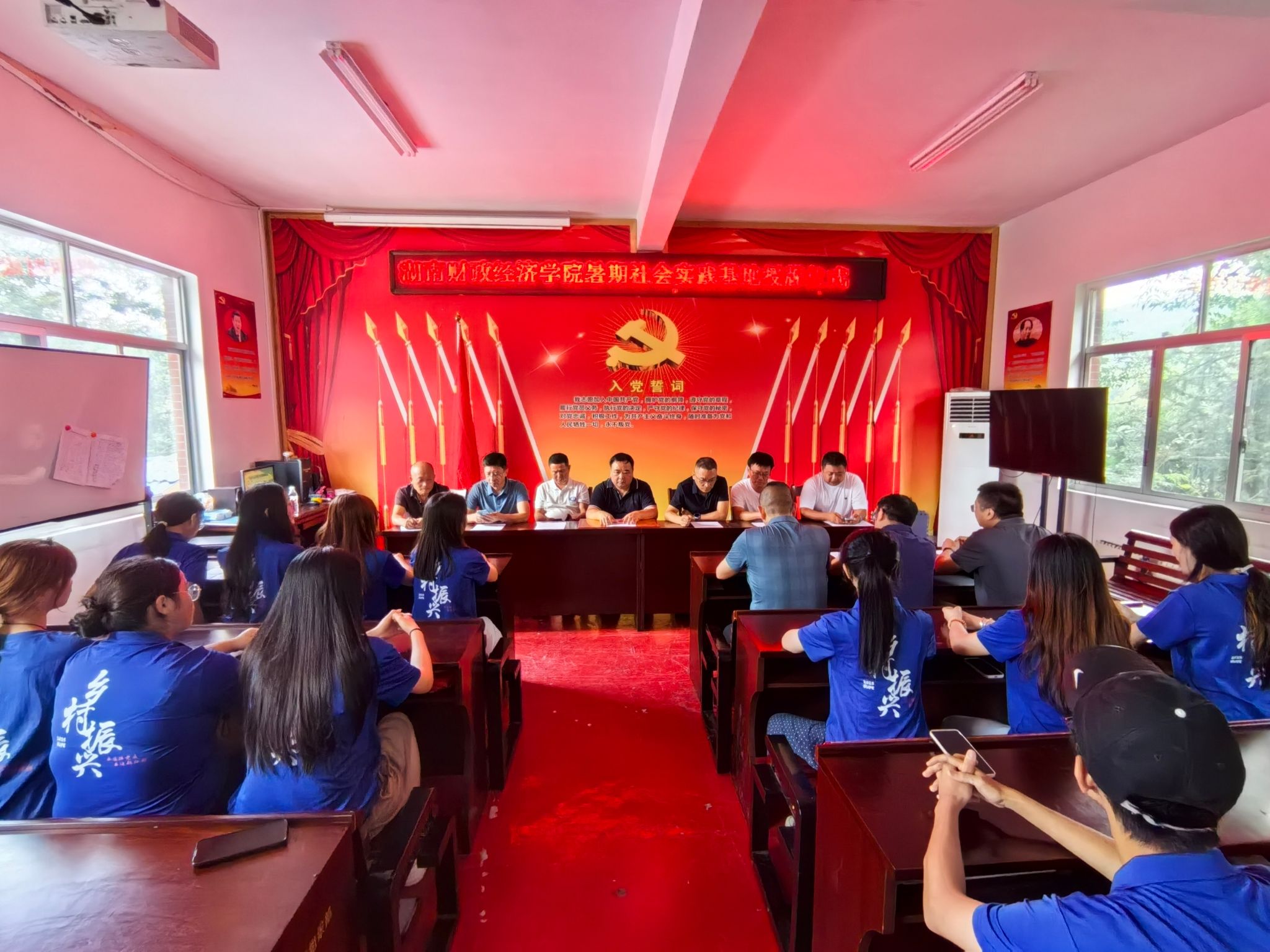 (本网讯)7月29日,永利暑期社会实践基地授牌仪式在湖南省怀化市芷江侗族自治县牛牯坪乡青叶树村村部会议室举行。校党委委员、宣传部、统战部部长文炳勋,学生工作部、团委主要负责人,芷江侗族自治县委常委、县人民政府副县长朱辉,牛牯坪乡党委书记丁芷安,青叶树村党支部书记彭晓春,驻村工作队和小易志愿服务队队员参加授牌仪式。