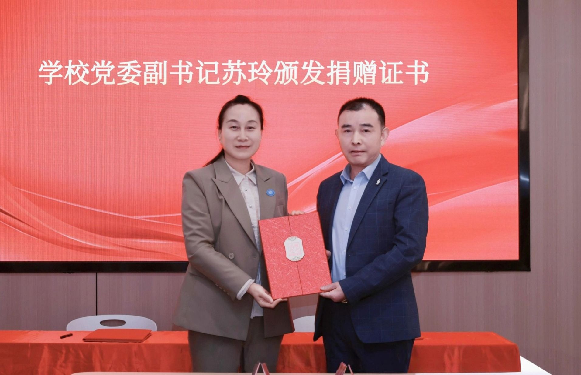 捐赠仪式上,1992届会计专业校友、亚太鹏盛税务师事务所股份有限公司合伙人孙公民向母校捐赠10万元,注入校友助学金。这是他继2024年捐赠10万元后,再次反哺母校育人事业。
