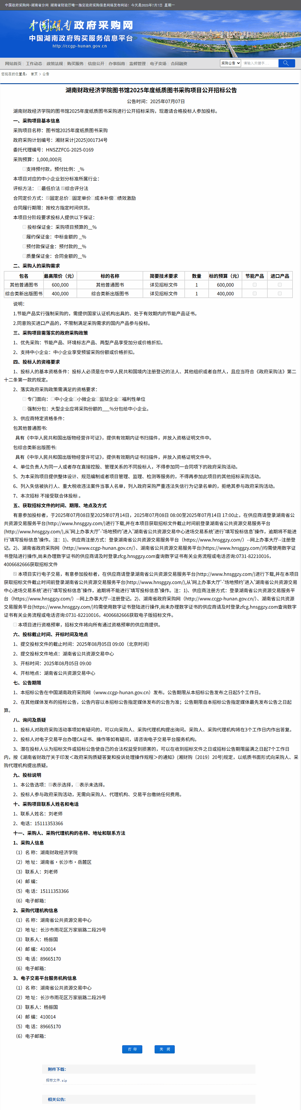 湖南省政府采购网:304永利集团登录入口图书馆2025年度纸质图书采购项目公开招标公告