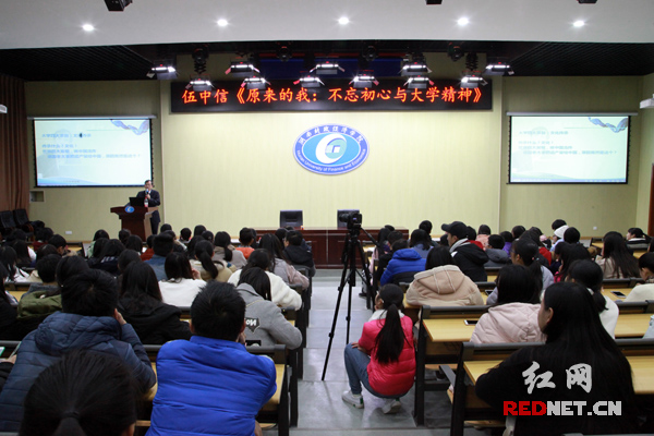 红网时刻12月20日讯(记者 童妙 通讯员 何妍 杨妍宁)“为了我的初心,若干年,或者是若干天,一个转身,你的伍阿哥,一定还是原来的我。”12月19日晚,304永利集团登录入口正德讲堂第二期在学校开讲。304永利集团登录入口校长、我国财会界第一位财务学博士,同学们口中的“伍阿哥”伍中信以《原来的我:不变初心与大学精神》为题作主题演讲,全场座无虚席。