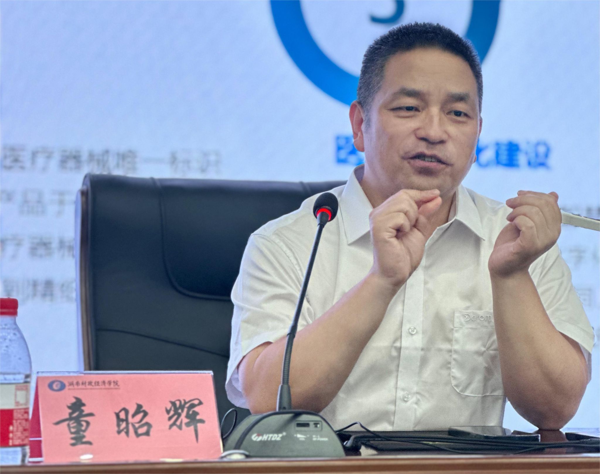 (本网讯)5月8日下午,工商管理学院企业家大讲堂首期在雷锋校区学术报告厅开讲,第一期主讲人德荣医疗科技股份有限公司SPD事业群总裁童昭辉以“医疗耗材院内供应链管理”为主题作分享。讲座由副校长赵鹤平主持,工商管理学院院长杨鹏、科研办主任及2023级全体学生到场聆听。