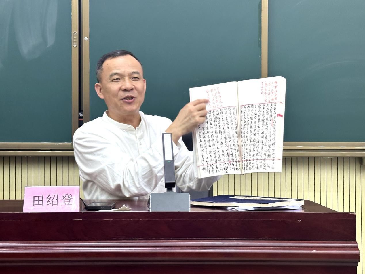 (本网讯)6月5日下午,由宣传统战部、教务处、人文与艺术学院、团委联合举办的美育大课堂在学校二教学楼2J02学术报告厅开讲。湖南美术馆馆长田绍登为师生讲授了一堂题为“从艺术创作到艺术管理:角色转换与价值平衡”的精彩讲座。讲座由副校长郭国强主持。