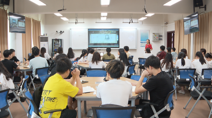 在学校思政课智慧教室里,首届“全国高校思想政治理论课教学展示活动”一等奖获得者、“全国高校思想政治理论课教学骨干”王诗卉老师正在给同学们讲授《湖湘青年英烈的坚韧与担当》党史课,同学们在老师的指导下以学习小组的形式参加讨论,撰写报告,展示成果,从湖湘青年英烈的先进事迹中汲取新时代接续奋斗的精神动力。