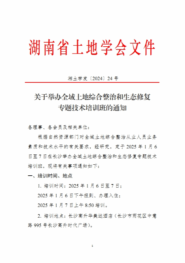 关于举办全域土地综合整治和生态修复专题技术培训班的通知