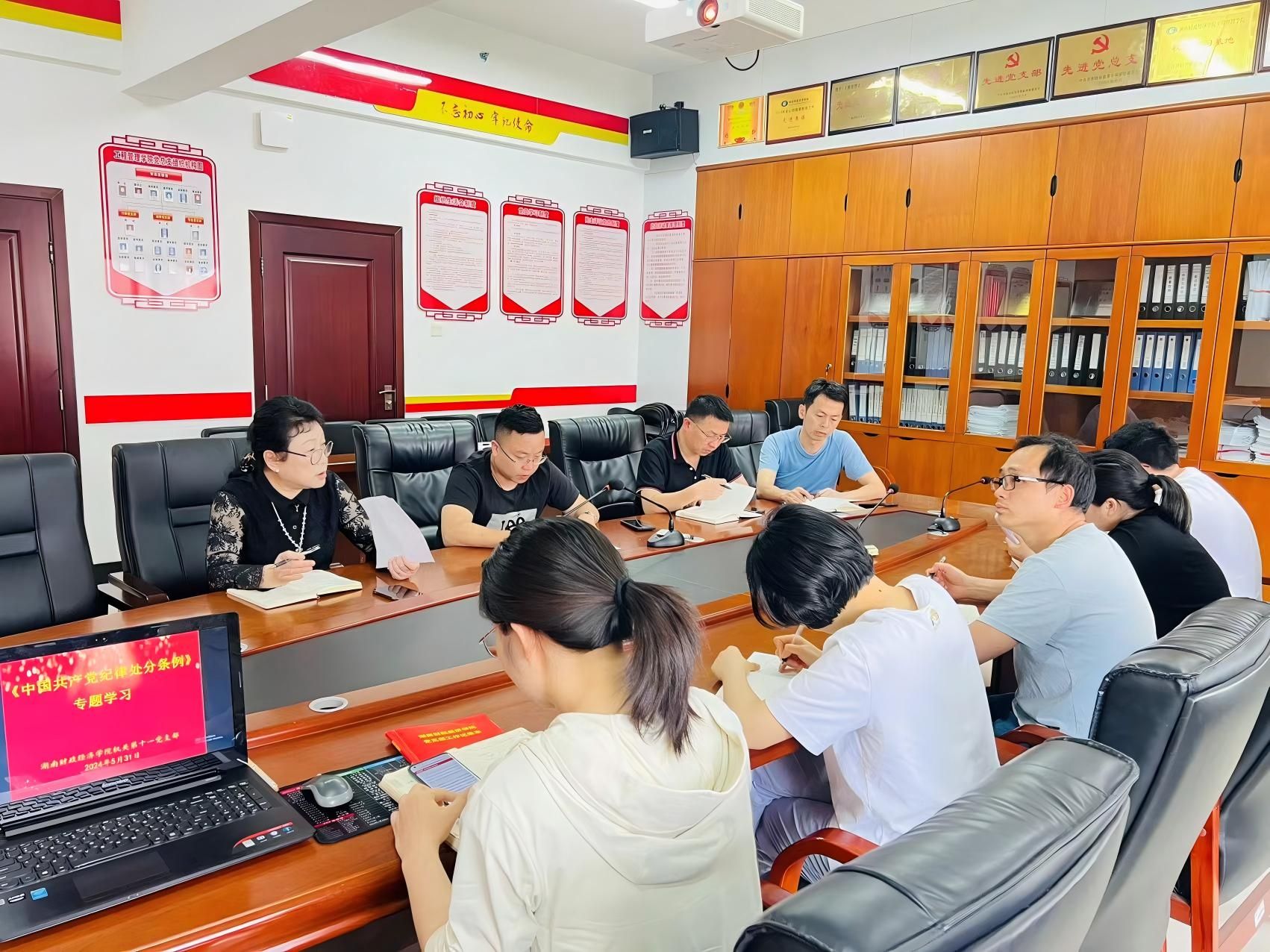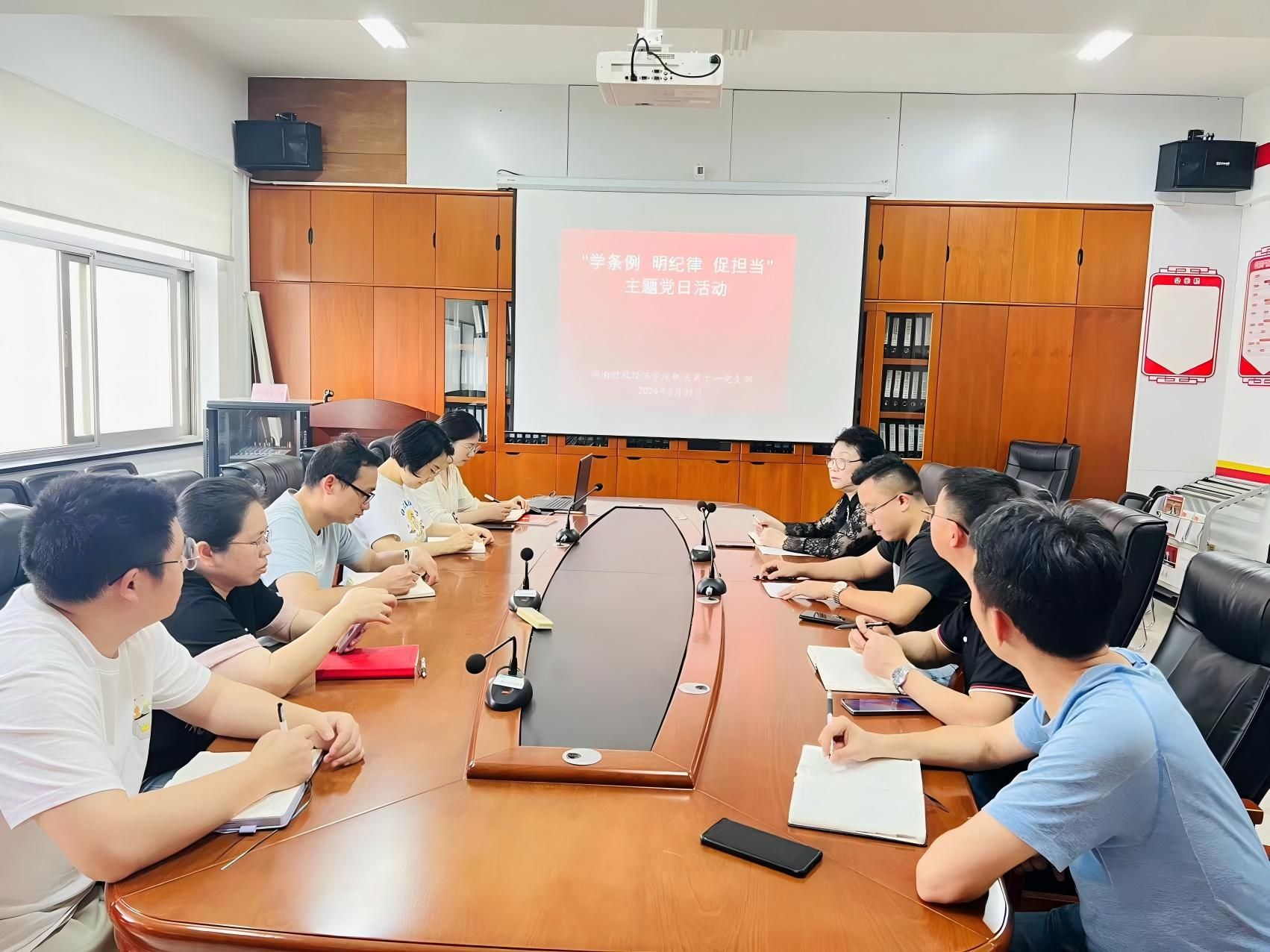 (本网讯)为持续在学纪、知纪、明纪、守纪上聚力用劲,5月31日上午,机关第十一党支部在行政楼911会议室开展“学条例 明纪律 促担当”主题党日活动。活动由党支部书记魏晓主持,公司全体党员参加。