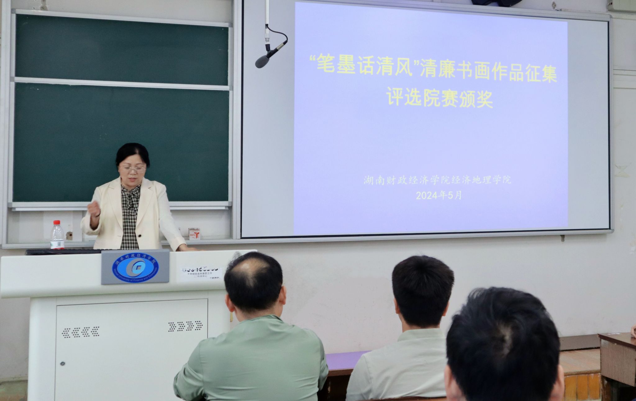 (本网讯)为进一步弘扬清廉校园文化新风尚,有效发挥廉洁文化启智润心的教育作用,5月10日,经济地理学院举办的“笔墨话清风”清廉主题书画比赛圆满落下帷幕,学院直属党支部书记姚旭辉、党员师生代表及21、22级部分学生等50余人参与此次活动。