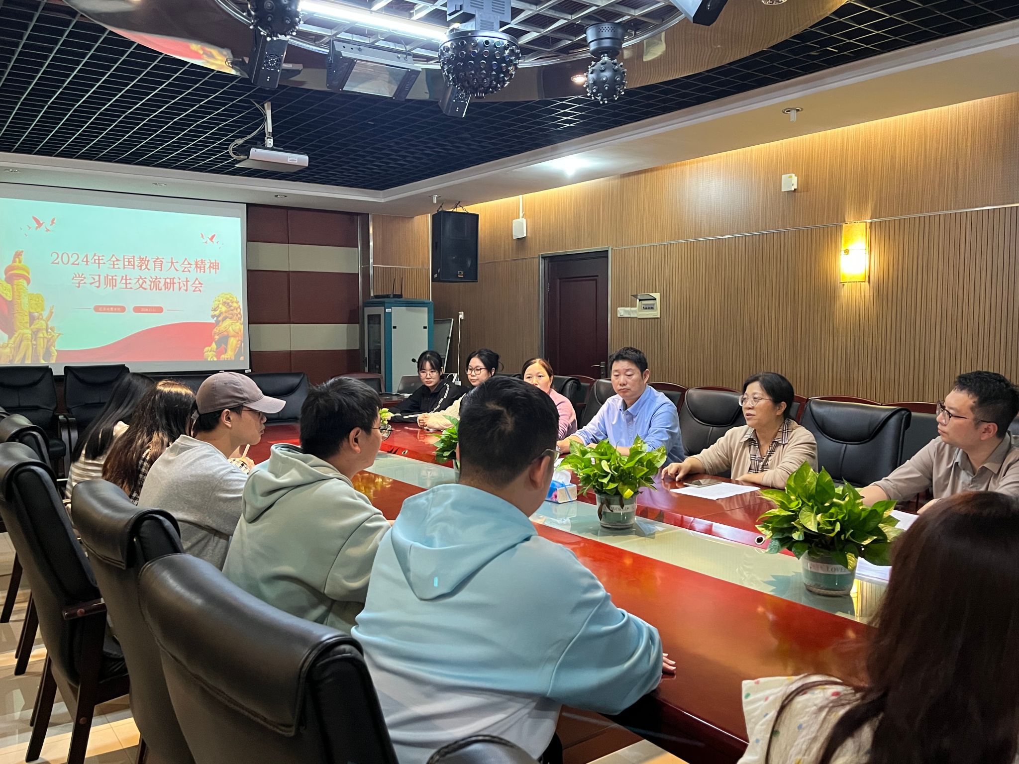 在自由交流环节,与会师生就“为什么要学习全国教育大会精神”“如何学习全国教育大会精神”“大学生应如何助力实现教育强国”等问题进行了探讨。