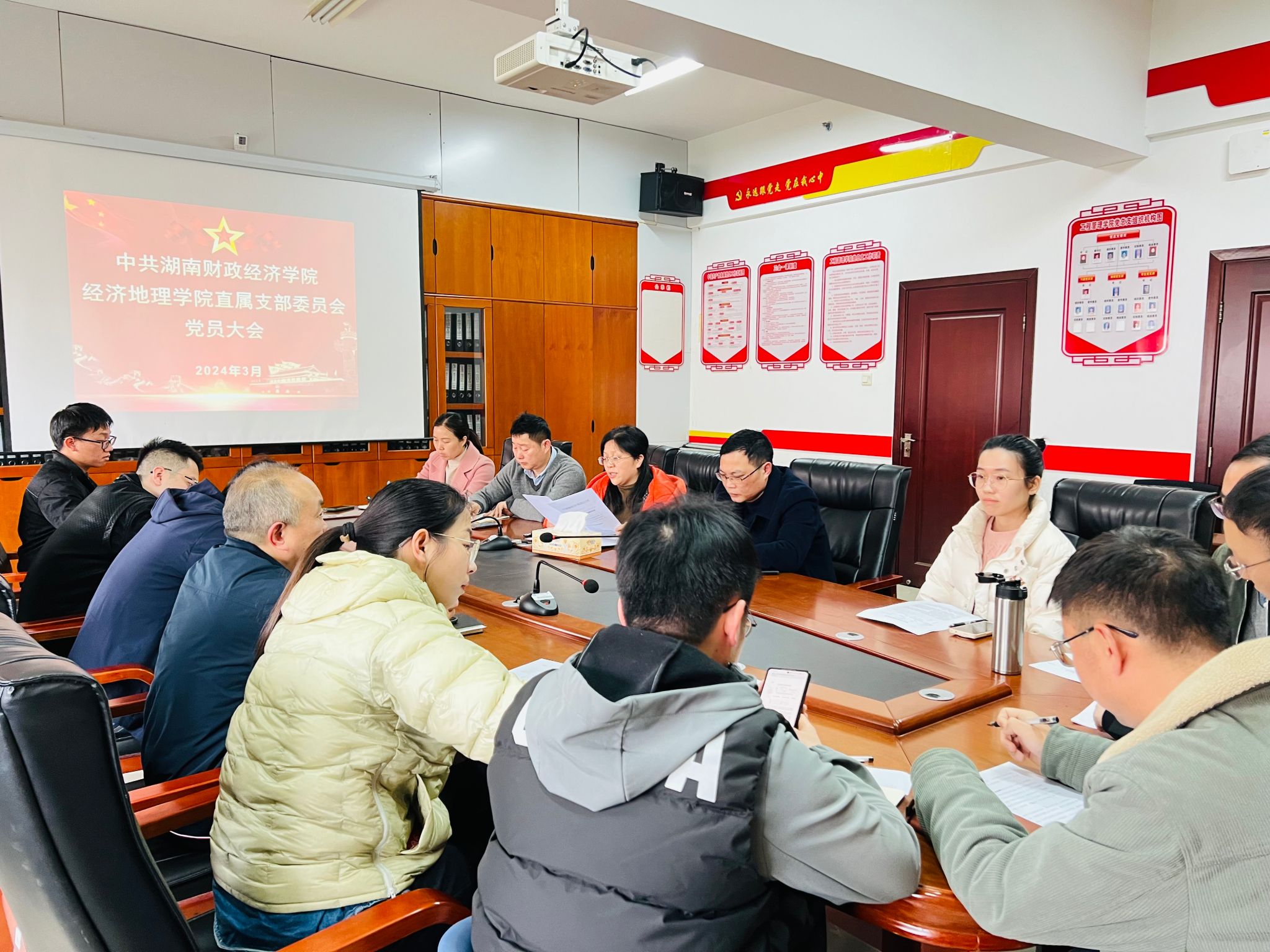 (本网讯)3月13日下午,经济地理学院直属党支部在行政楼911会议室召开党员大会,开展2023年度民主评议党员工作。会议由学院直属党支部书记姚旭辉主持,全体党员参加了本次会议。