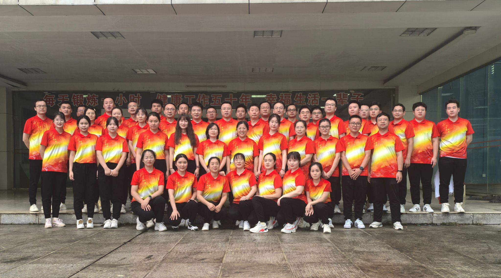 比赛前,学院领导和院分工会高度重视,通过精心策划、广泛动员和充分准备,号召全院教职工积极克服工学矛盾,利用业余时间组织了多次集中训练和彩排。领操人员详细地对第九套广播体操的每一节动作进行了分步讲解,并亲自示范正确的姿势和动作轨迹,确保每一位在场的教职工都能准确掌握动作要领。在领操人员耐心指导下,采取互促帮教模式,逐节细抠每一个动作,一排一排指导验收,参赛教职工的动作逐渐变得规范起来,每一步都凝聚着全院教职工的付出与汗水。