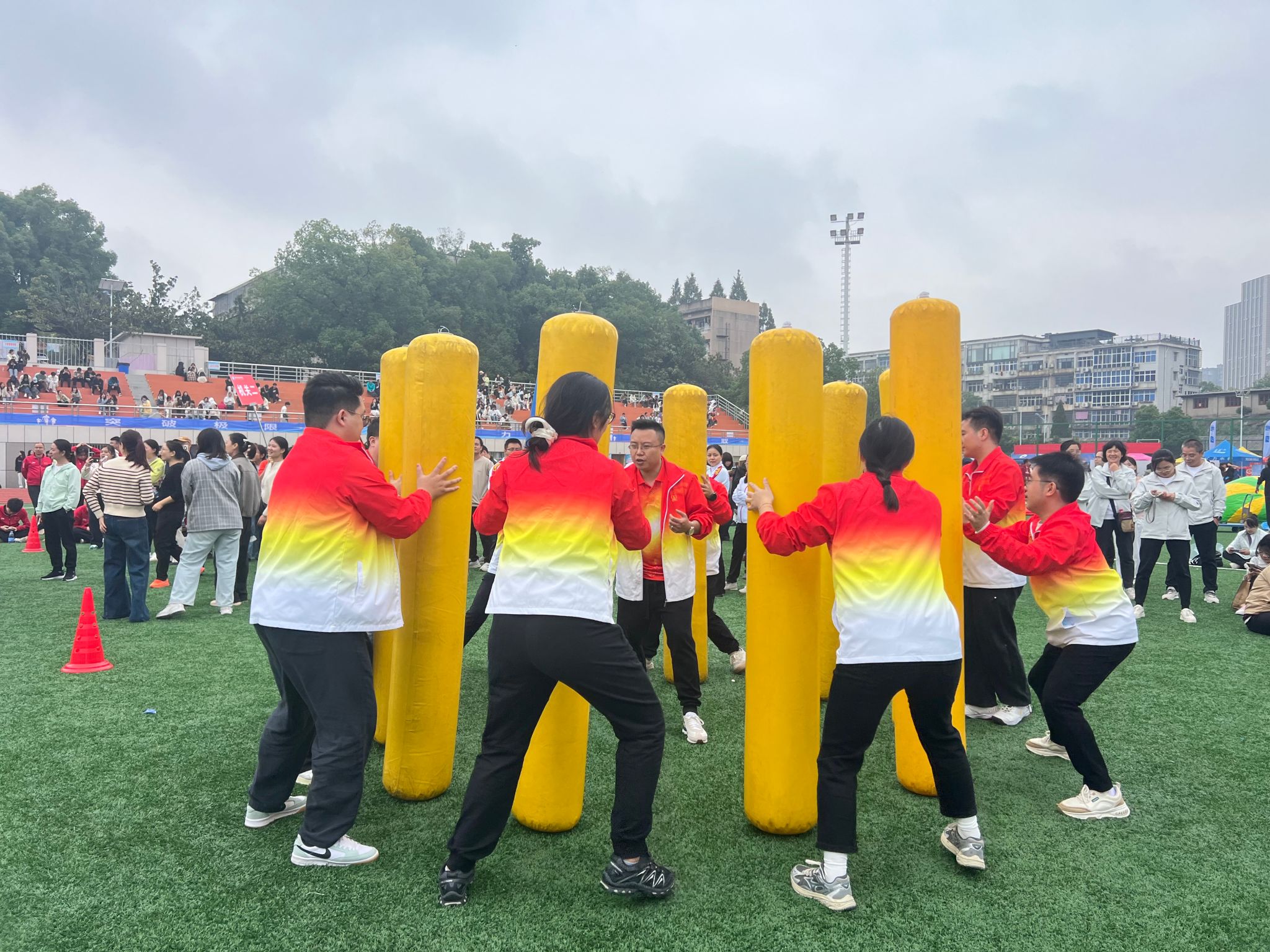 此次趣味运动会集竞技性、趣味性和协作性于一体,设置了“鸿运当头”“车轮滚滚”“薪火相传”“迎面接力”四个团体项目。平日里辛勤耕耘于三尺讲台的老师们,今日化身“运动好手”,铆足干劲、奋勇拼搏,展开了一场速度与激情的较量、智慧与力量的角逐,成为赛场上一道亮丽的风景线。比赛现场气氛紧张而热烈,每位参赛选手脸上都洋溢着喜悦之情,现场加油声、欢呼声此起彼伏,将比赛氛围一次次推向高潮。