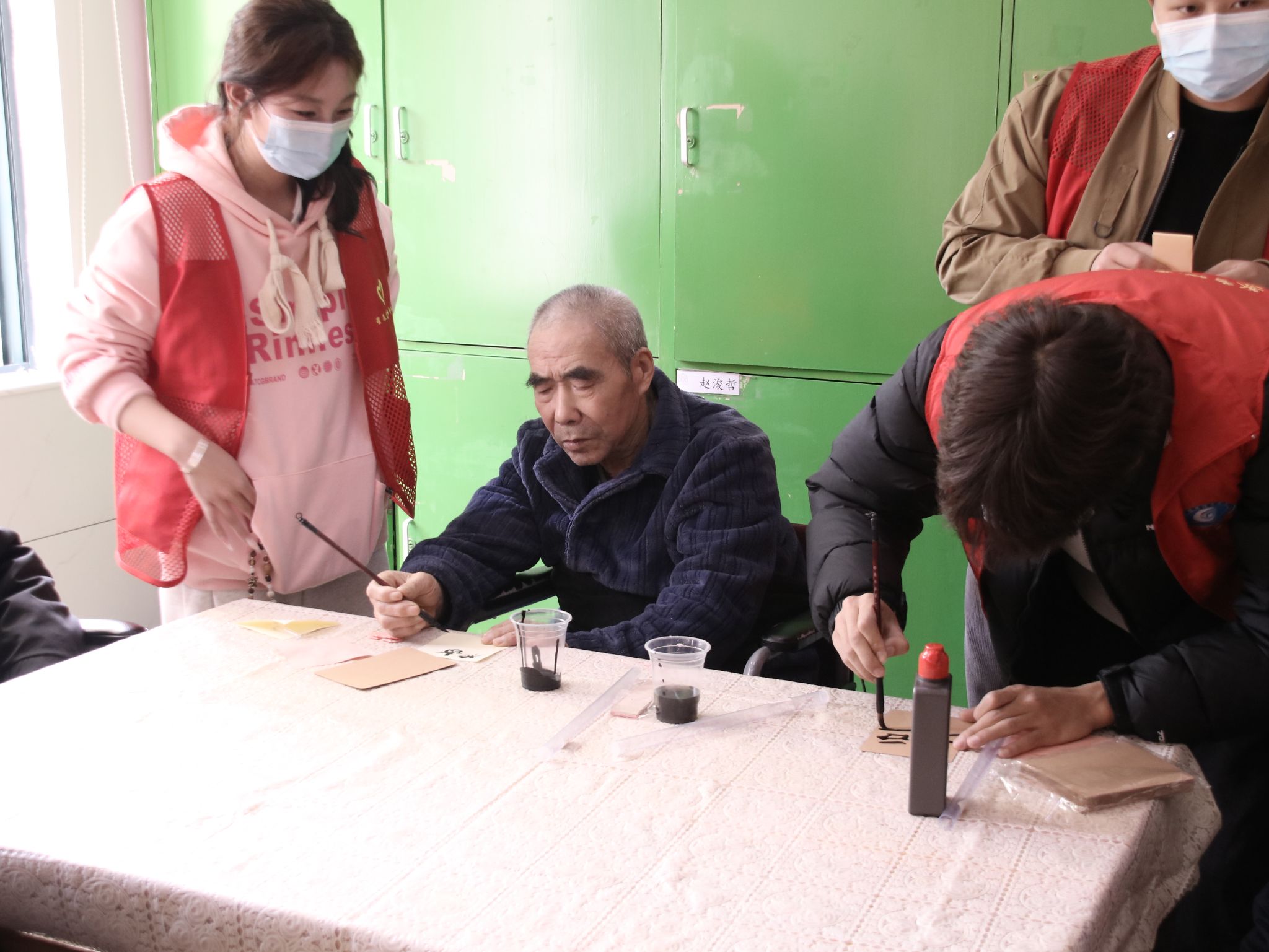 接着,经济学院的同学们与老人们一起开展了“笔墨传情”活动,大家共同书写毛笔字,一笔一画间传递着对传统文化的热爱和对美好生活的祝福。