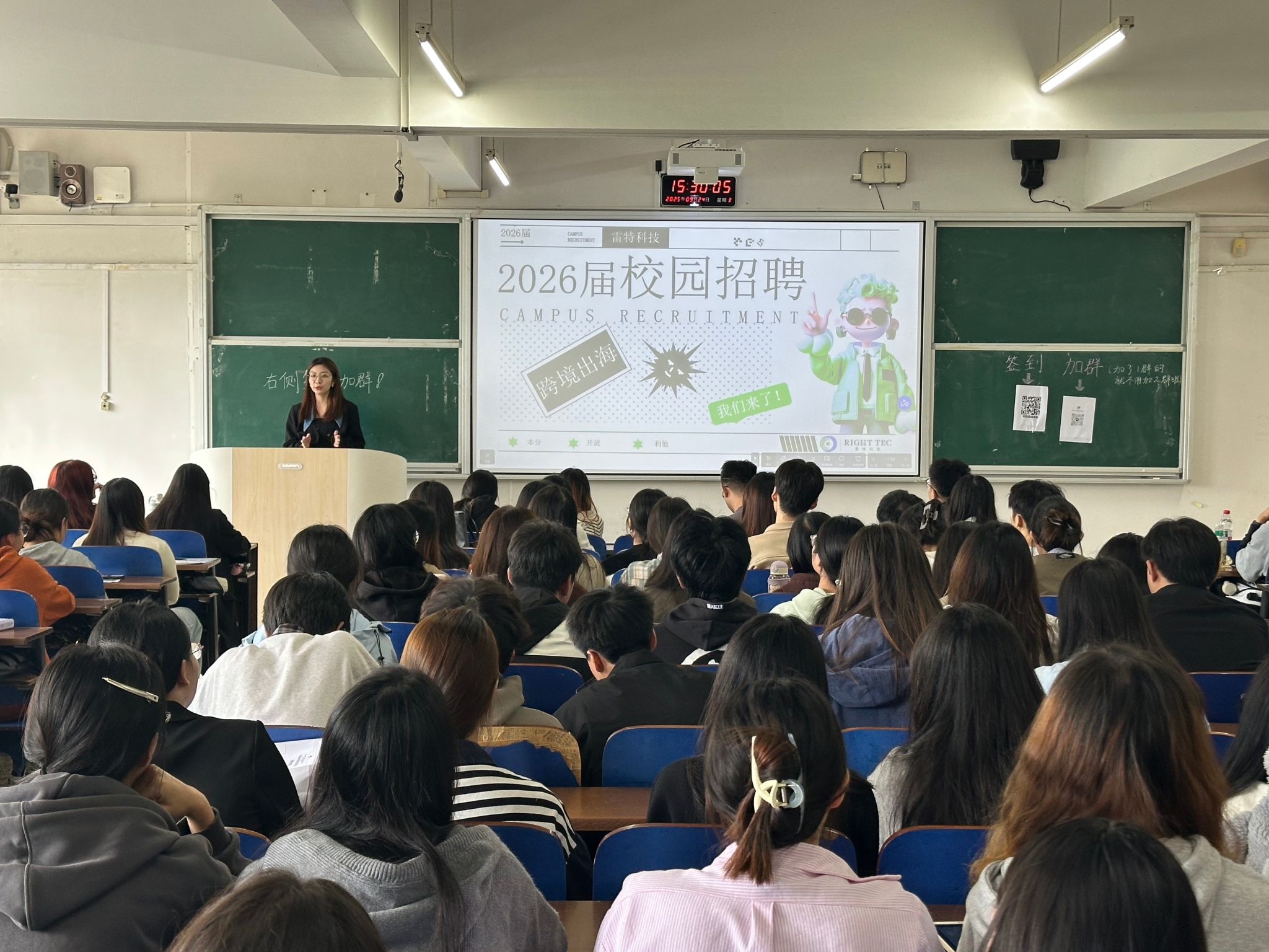 (本网讯)为切实拓宽毕业生就业渠道,帮助学生精准对接优质岗位,9月24日下午,深圳雷特网络科技有限公司在三教3109教室举行专场宣讲会,为我院学子开展专场宣讲,吸引了众多毕业生到场参与。