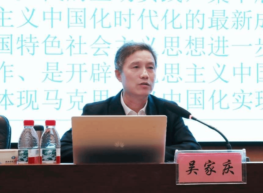 吴家庆围绕《习近平谈治国理政》第五卷的框架结构、主要内容与核心要义进行了系统梳理和深入阐释。他结合当前国内外形势变化与中国特色社会主义发展实践,重点解读了第五卷中关于坚持和发展中国特色社会主义、进一步全面深化改革和以新质生产力赋能中国式现代化等重大议题的论述。吴家庆特别指出,第五卷在理论建构中深刻蕴含了“两个结合”的重要思想,既体现了习近平新时代中国特色社会主义思想对马克思主义中国化时代化的深化拓展,也彰显了中国共产党在文化建设、道路选择与制度构建中的历史自觉与文化自信。通过将“中国式现代化”的实践探索与中华优秀传统文化中的治理智慧相融合,第五卷为推动中华民族现代文明建设提供了理论支撑和实践指引。