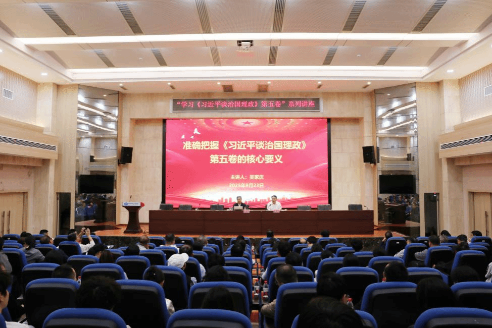 易棉阳首先代表学校对吴家庆教授的到来表示热烈欢迎,并强调了深入学习《习近平谈治国理政》第五卷的重要意义。易棉阳指出,第五卷集中展现了习近平总书记在新时代治国理政实践中形成的一系列原创性思想、战略性举措和标志性成果,是全党全国各族人民奋进新征程、建功新时代的根本遵循和行动指南。全校师生要以此次讲座为契机,系统把握其精神实质,推动党的创新理论入脑入心、见行见效。
