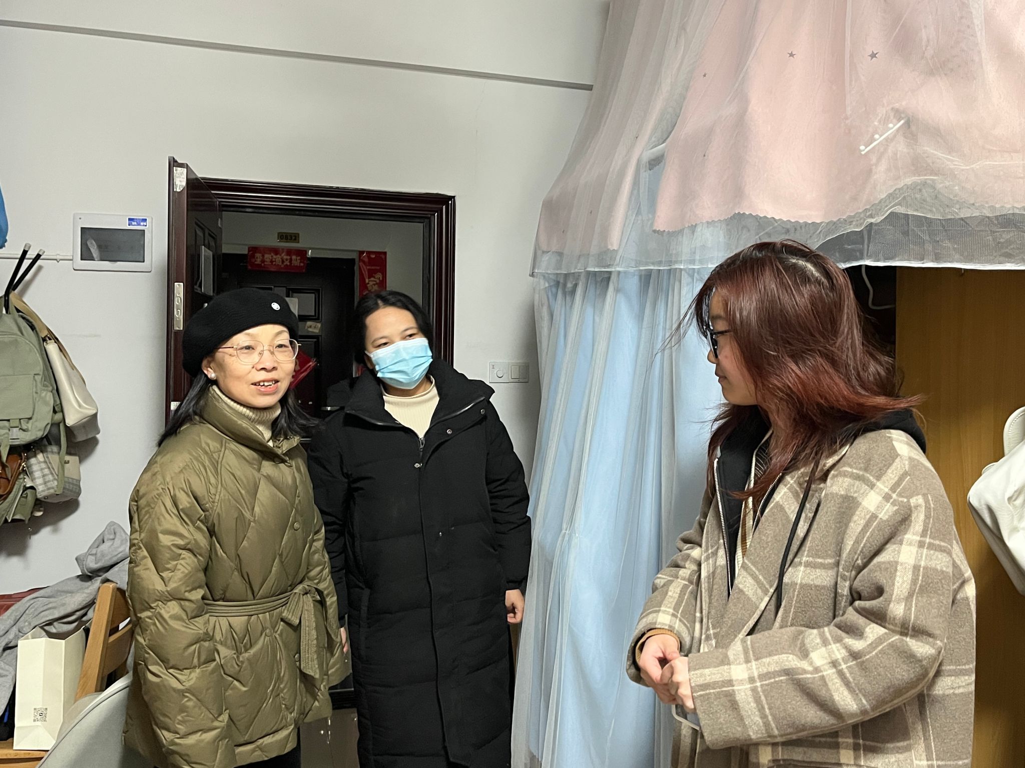 2月26日,学院领导带队走访学生宿舍,看望慰问返校学生,实地了解学生学习、生活、心理等情况,为学生送去关心和问候,并进行安全工作检查。在检查过程中,辅导员老师对宿舍用电安全及消防等问题进行排查,并嘱咐大家一定要注意用电安全、出行安全和财产安全,不随意在床铺周围、书架角落等牵设电线板,出门要随手关灯关空调,避免发生意外。此次检查重点包括宿舍是否存在违规使用大功率电器、私拉乱接现象以及使用其他违禁物品等。从检查情况来看,学院大部分学生宿舍卫生状况良好,学生普遍能够遵守学校宿舍安全管理规定。