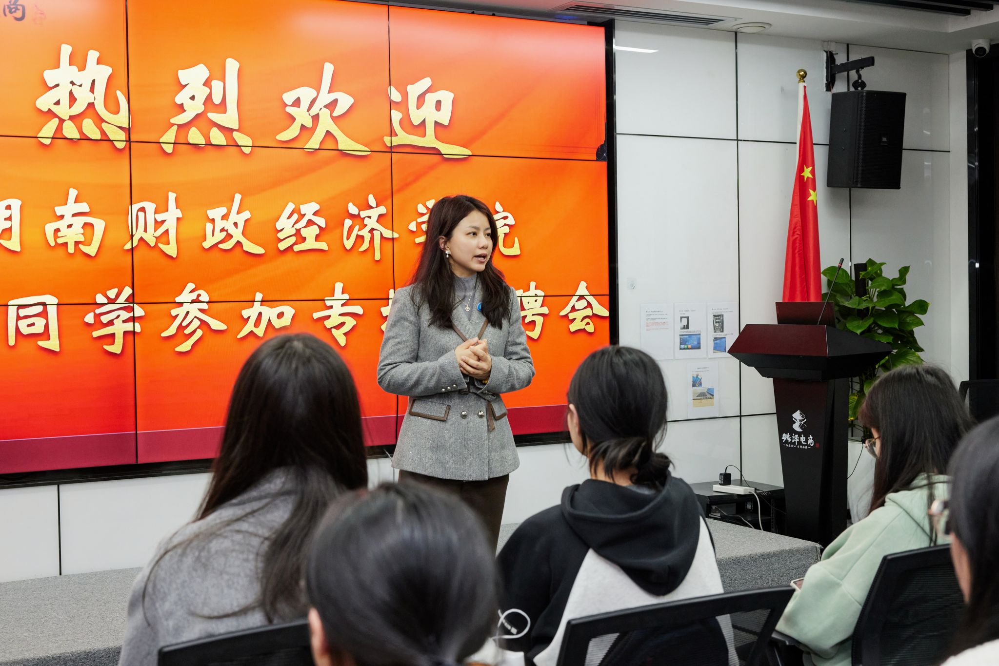 参观结束后,全体师生与企业进行了座谈与宣讲,并就产学研发展进行更深层次的沟通。企业创始人之一兼天猫事业部总经理李平先生对我院师生一行的到来表示热烈的欢迎,并就企业发展优势、人才战略、未来前景等情况作发言介绍,表达了对深化校企合作的期待和信心。他指出,希望未来双方能够在人才培养、实践学习、招才引智等方面展开更加深入的合作,探索多元化的校企合作模式,产教融合,实现互利共赢。