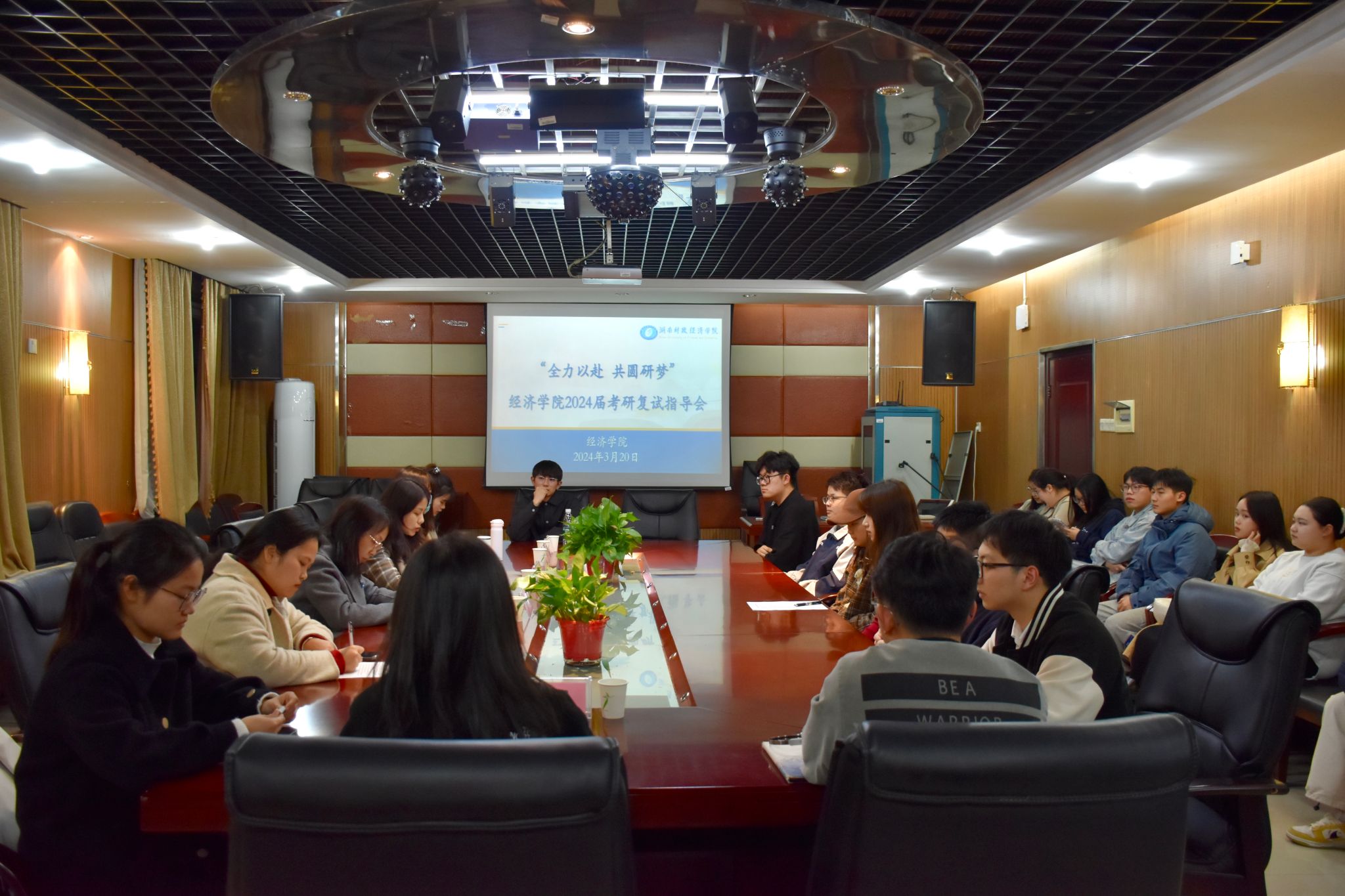 (本网讯)为进一步帮助学院2024届毕业生全面了解掌握复试和调剂流程与方法,2024年3月20日,我院在办公楼1014顺利召开了“全力以赴,共圆研梦”2024届考研复试指导会。本次会议邀请了经济学院副院长陈雯、教师代表彭思倩、孙珂珂以及4名研究生学长学姐进行复试经验分享与交流,毕业班辅导员和2024届考研上线学生参会。会议由经济学院党委副书记刘英主持。