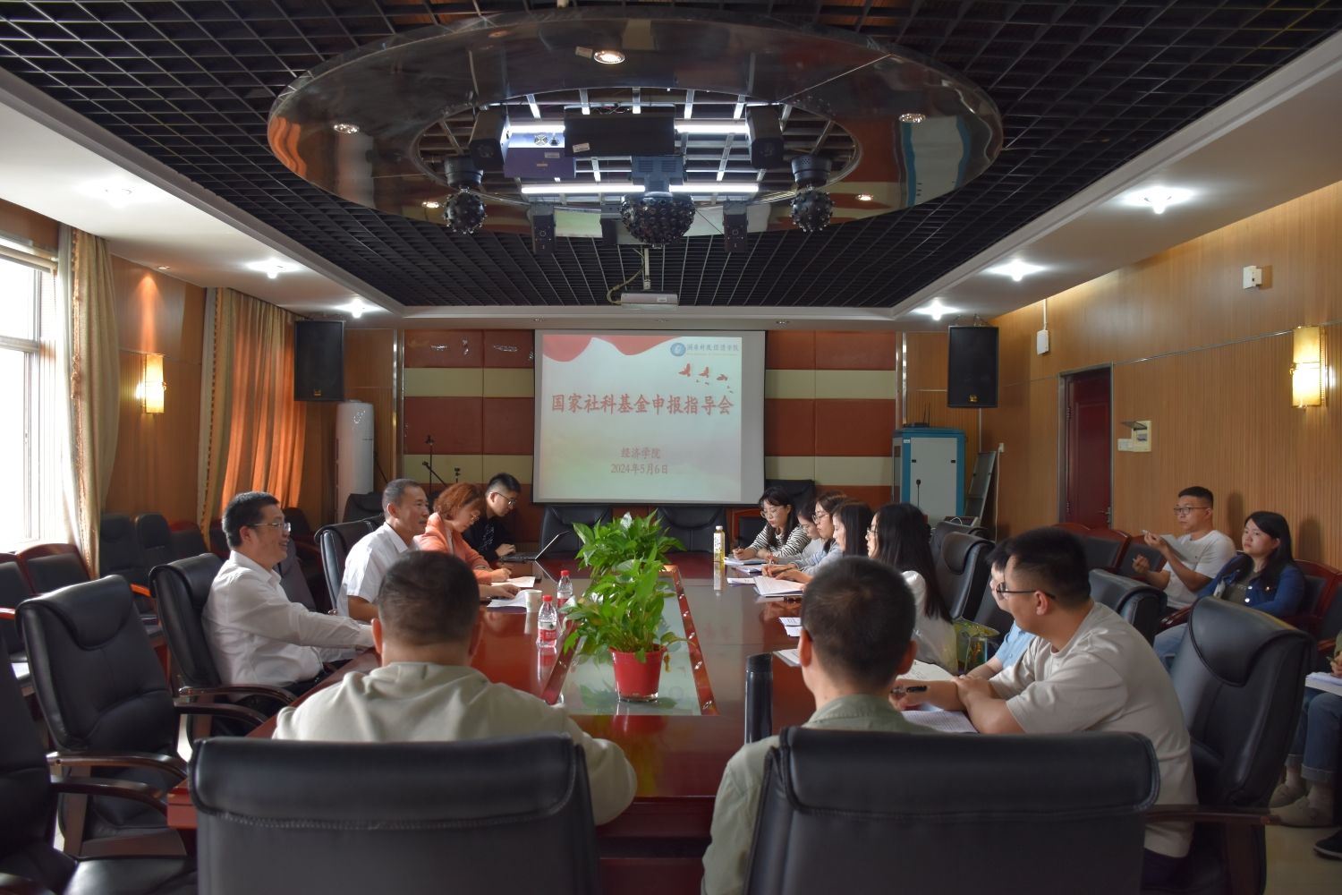 (本网讯)为提升教师队伍的科研能力和项目申报质量,5月6日,经济学院特邀北京师范大学经济与工商管理学院戚聿东教授现场指导,指导会由校长刘长庚主持,经济学院副院长彭千芮、学院拟申报2024年国社科项目教师及联合培养博士生参加会议。