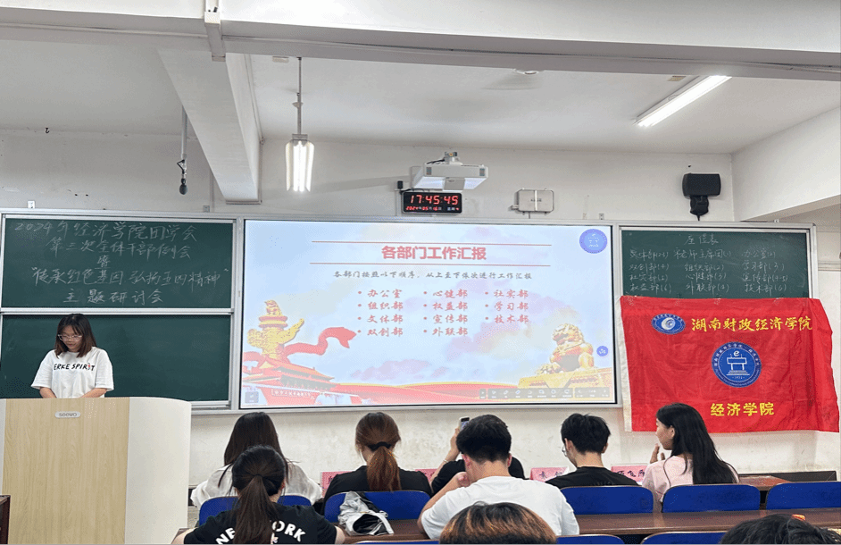 会议伊始,各部门代表首先汇报五月份上半个月工作总结下半个月工作计划。在"传承红色基因,弘扬五四精神"专题研讨环节,经济学院团学会全体干部一同观看“传承红色基因,弘扬五四精神”主题教育影片。