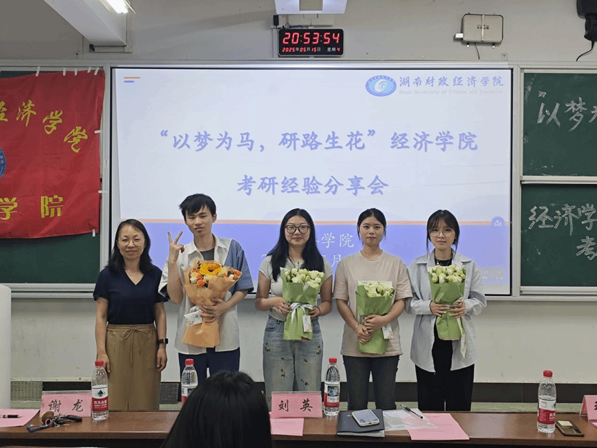 (本网讯)为助力学生深入洞悉考研政策、明确学习路径,并科学规划复习策略,经济学院于5月15日晚上19:00在3108成功举办了“以梦为马、研路生花”考研经验分享会。本次分享会特邀我院21级优秀考研上岸学生分享考研经验,参加本次分享会的有经济学院院长李勇辉、院党委副书记刘英、学工办负责人谢龙、26届辅导员王竹青以及22、23级意向考研的同学。