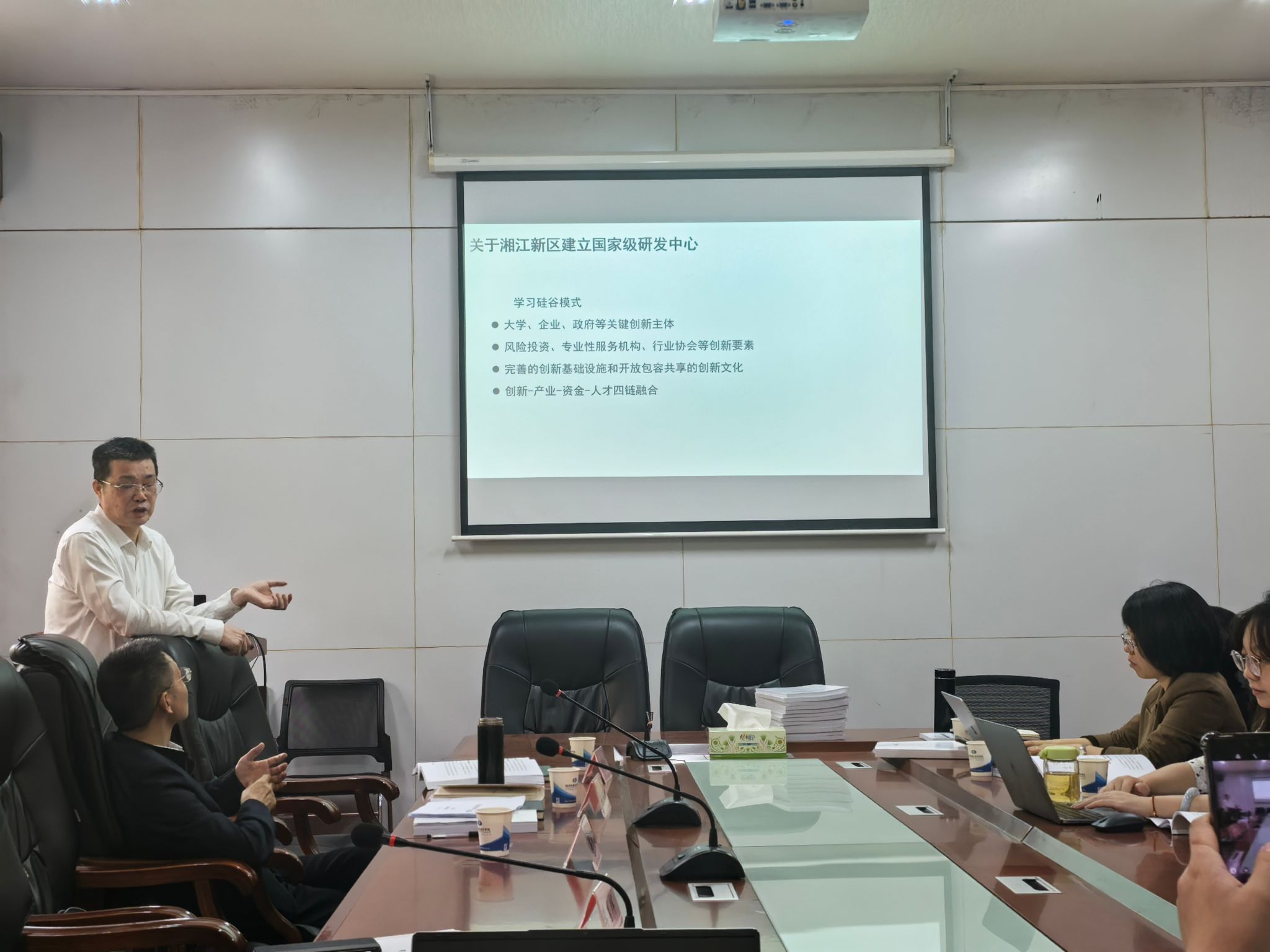 会议以中央金融工作会议精神为纲领,强调“科技金融”在五大金融工程中的核心地位。刘长庚教授指出,我国需加速弥补直接融资短板,通过壮大耐心资本、完善风险投资链条,破解科创企业“融资期限错配”难题。三一重工与中联重科案例表明资产专用性强的企业更依赖股权融资。借鉴硅谷横向开放型创新网络,湘江新区需强化基础研究投入。刘辉煌教授剖析长三角科创金融改革试验区经验:上海、杭州通过“政策集成+区域联动”破解融资瓶颈,如千亿政府引导基金、“投贷保担”全周期服务等举措。湘江新区对标实践,构建765亿元基金矩阵,依托“湘信融”平台归集5亿条数据实现165亿元智能授信,培育25家独角兽企业,首创“收益让渡”模式吸引社会资本投资早中期项目。随后,吴金光教授分享了《湘江新区科技金融赋能"三高四新"战略发展报告》。