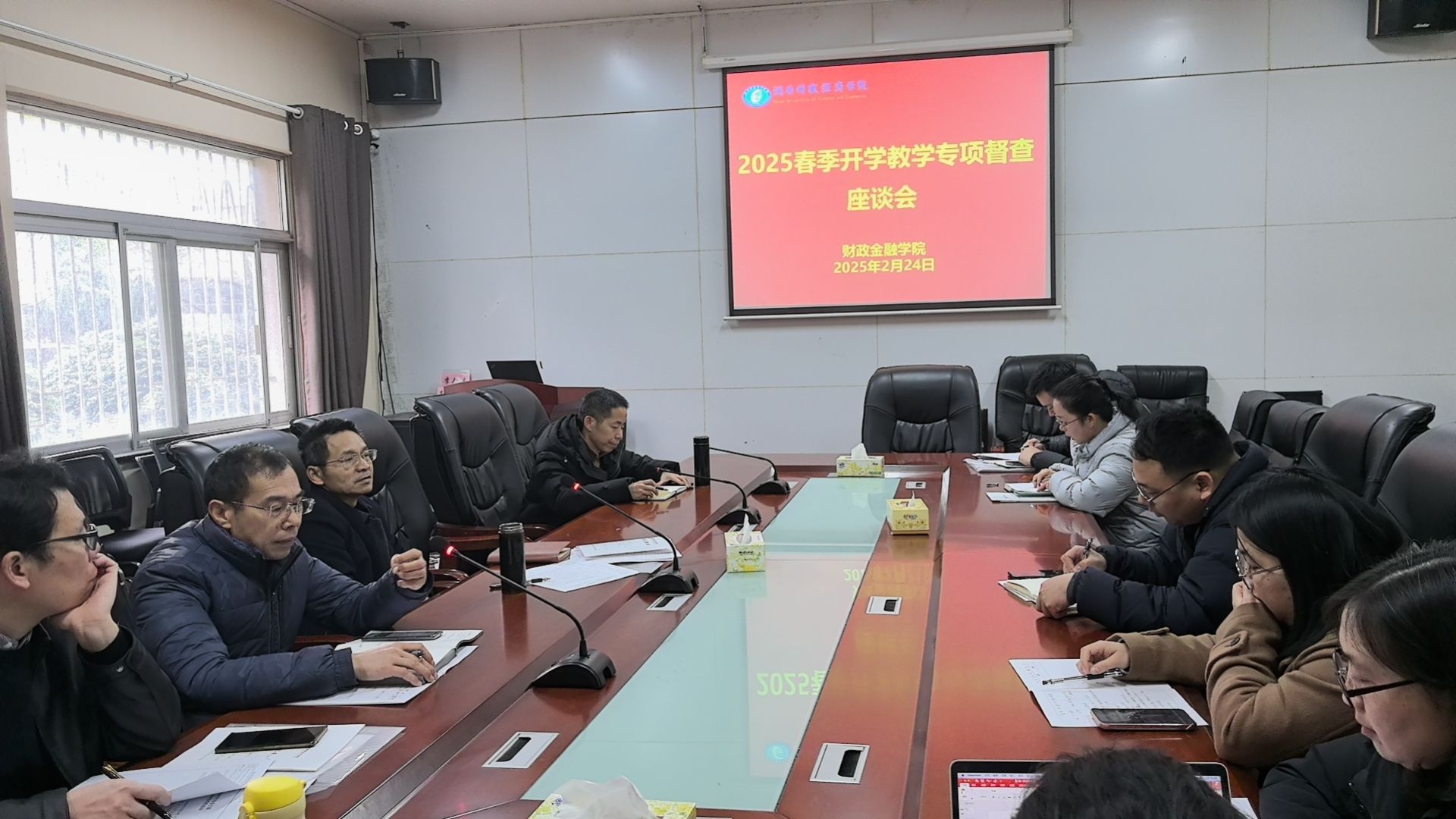 为保证新学期教学的工作平稳有序和教学秩序的正常运行,2月24日上午8点,财政金融学院院长刘辉煌带领各系主任深入教室随堂听课,随后于办公楼119会议室召开2025年春季新学期开学专项教学督查座谈会。院长刘辉煌,书记肖燕飞,副院长罗四维,副院长黄华军,教务办主任贺文静,学工办主任易好及各系主任参加会议,会议由刘辉煌主持。刘辉煌就我院平稳有序组织开学工作对全院人员进行了充分的肯定,对课堂教学的内容与方法表示高度认可。...