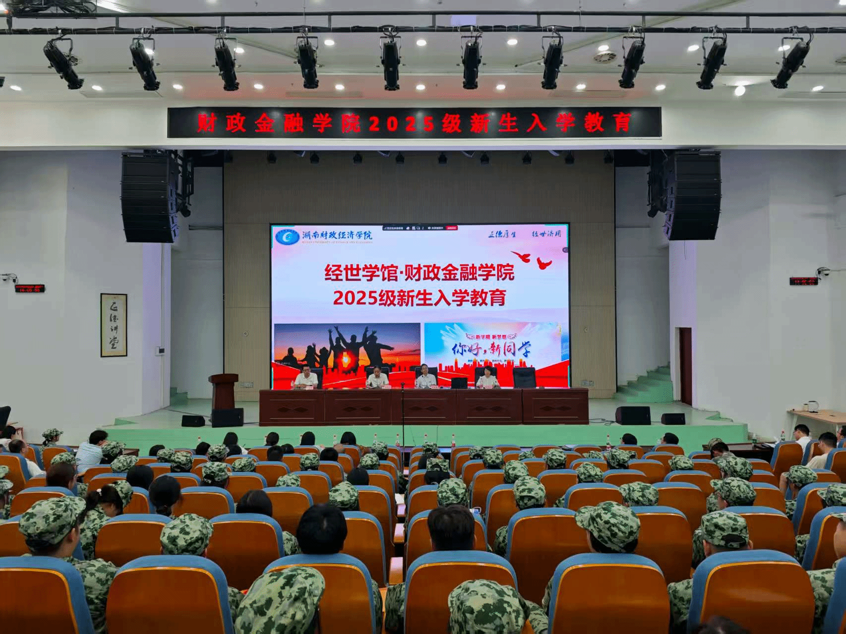 9月13日下午,财政金融学院2025级本科生新生入学教育大会在雷锋书院隆重举行。院党委书记肖燕飞主持会议,院长刘辉煌,副院长李艳丰、黄华军,四办主任、各系主任、学业导师、优秀教师代表、优秀学生代表和2025级全体新生共同参与本次会议。会上,肖燕飞书记代表学院对2025级全体新生的到来表示热烈欢迎,并向同学们介绍了出席入学教育的院领导、系主任、教师代表及辅导员团队。肖燕飞书记简要阐述了财政金融学院的发展历程和学科特色,...
