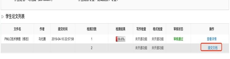 前一次检测完成后,即可出现新的“提交文档”的按钮,此时可以提交下一次待检测的论文。流程与第一次提交相同。