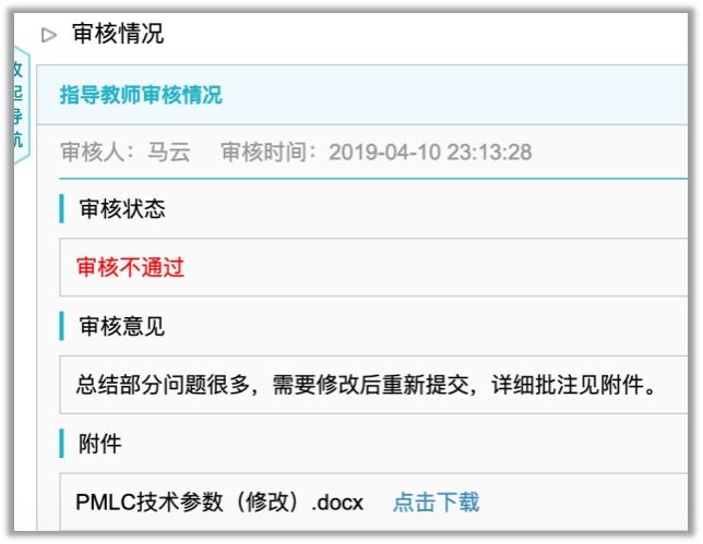 2.若指导教师审核不通过,可点击详情查看,如下图:
