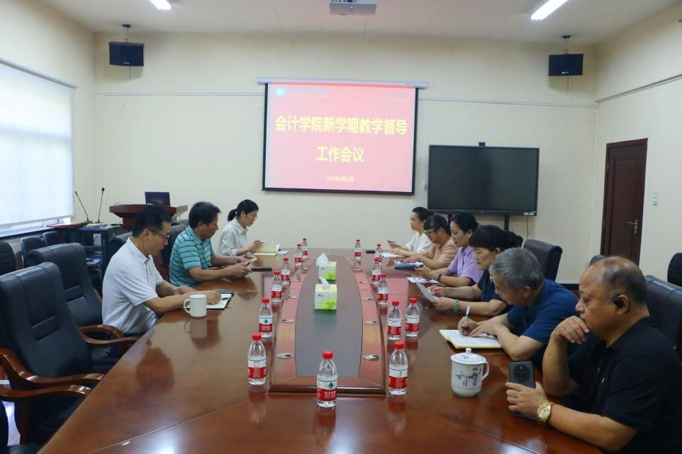 (本网讯)为进一步加强学院教学质量管理,完善教学质量监控体系,提高教育教学质量,9月18日下午,会计学院教学督导组新学期第一次工作会议在办公楼215顺利召开。本次会议由会计学院院长潘彬主持,院党委书记戴恩湘、督导组组长王颖梅及成员、教务科主任许炉炉出席会议。