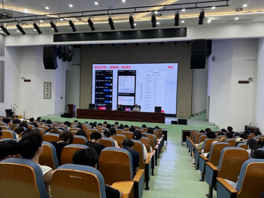 随后,北京用友政务软件股份有限公司大区人力行政总监赵嫣然女士作为主讲嘉宾,为学生们带来了一场精彩纷呈的讲座。她详细解读了企业数智化转型的趋势,从技术应用、商业模式、组织结构等多个方面进行了深入分析。赵女士还结合丰富的实际案例,展示了数字化在企业运营管理中的广泛应用场景,让在场的学生们对数智化有了更加直观的认识。她指出,随着企业数智化进程的加速推进,对具备数字化技能和创新思维的人才需求日益增长。她鼓励同学们要不断提升自己的专业素养和综合能力,积极适应数智化时代的发展要求。