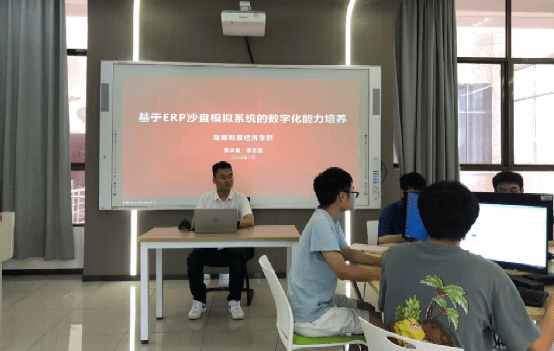 (本网讯)7月4日上午,应我院邀请,新道科技股份有限公司湖南分公司教学服务经理李正强先生,来校开展ERP沙盘模拟系统训练的讲座,参与培训的教师有李力培博士、黄睿博士等。