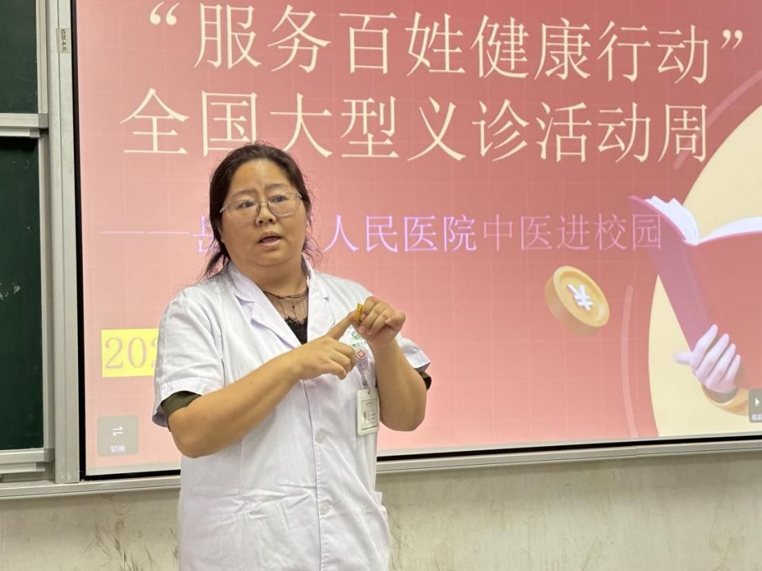 首先,岳麓区人民医院资深中医张献中开展中医知识宣讲,从疾病预防、日常习惯,饮食等角度出发让健康知识深入人心,让同学们初步了解中医。