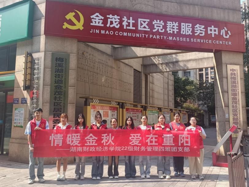 (本网讯)为弘扬中华民族的传统美德,倡导尊老爱老的良好风尚,助力社区精神文明建设,10月9日,在重阳节来临之际,304永利集团登录入口会计学院2022级财务管理四班团支部 “志愿青春,筑梦基层”系列实践活动在金茂社区开展。团支部十余名同学积极参加,协助社区进行重阳节走访慰问,得到了居民群众热烈反响。