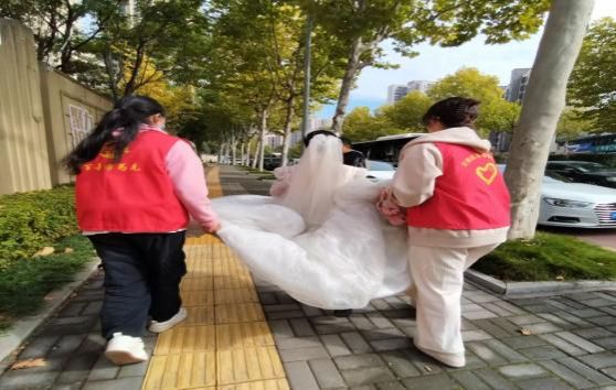 11月18日,22级财务管理四班团支部的同学们前往梅溪湖壹号小区开展“青春送暖,‘心’系夕阳”实践活动。活动中,同学们为准备参加婚纱照拍摄的爷爷奶奶提供志愿服务,志愿者们提裙摆,打灯照明,搬道具……通过交流互动与老人建立了深厚的情感纽带。“老吾老以及人之老,幼吾幼以及人之幼”,此次实践活动不仅弥补了老人们年轻时候的遗憾,也促进了不同年龄群体之间的交流和理解,同学们不仅用实际行动为老人们献出了一份爱心,更践行了“敬老、爱老、孝老、助老”的传统美德。
