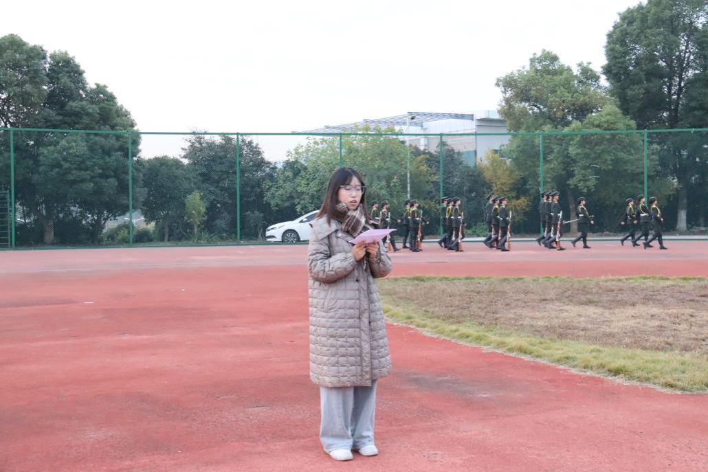 校国旗班同学们踏着矫健有力的步伐,护卫着鲜艳的五星红旗入场。他们的步伐整齐划一,姿态庄重肃穆,展现了当代大学生昂扬的精神风貌。当雄壮的国歌奏响,全场师生集体行注目礼,目光中充满了对祖国的热爱和敬仰,五星红旗在晨风中冉冉升起,那一抹鲜红点燃了在场每一个人心中的爱国热情。
