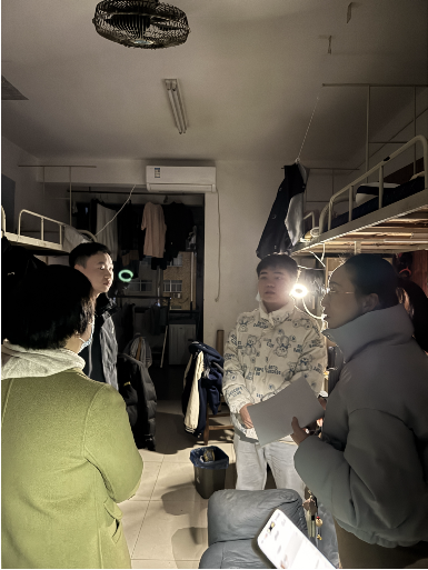 用电安全是此次走访的重点关注内容。老师们仔细检查了每个寝室的用电设备,向同学们强调了安全用电的重要性。“安全无小事,关乎你我他。”一个小小的疏忽都可能引发不可挽回的灾难,希望大家务必严格遵守学校的用电规定,共同维护我们的安全校园。