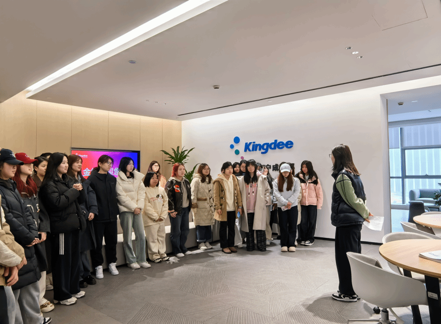 接下来,金蝶公司客户成功部的负责人向同学们介绍了金蝶的企业组成与其目前主要的产品,同学们参观了客户成功部员工日常工作的流程,更好的了解到企业内部工作运行的真实面貌。