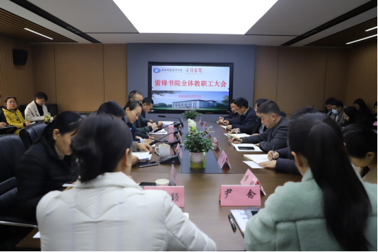 11月21日上午,雷锋书院在行政楼210会议室召开学生工作会议,此次会议由副书记黎红梅主持,副书记袁冶、副教授卿再花、副主任刘昊及学工办全体人员参加会议。黎红梅首先通报了书院前段时间的学生工作情况,对下阶段工作进行了布置和强调:第一,辅导员要注意对学生进行思想意识形态教育,帮助学生树立正确的世界观、人生观、价值观,塑造积极向上的学习、生活状态,培养学生独立思考能力和社会责任感。第二,辅导员要狠抓学风建设,引导学生养成良好的学习习惯,...