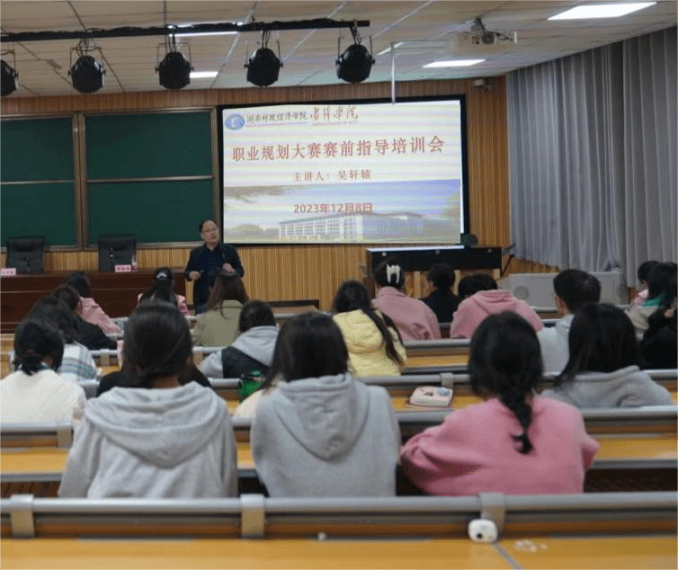 为了进一步实现以赛促学、以赛促教,引导大学生树立正确的成才观、就业观和择业观,科学合理规划学业和职业发展,提升就业竞争力。12月8日下午,我院特别邀请《职业生涯规划》国家级规划教材副主编,湖南省职业导师团成员,湖南省创新创业就业学院特聘指导专家,湖南卫广大学生就业专栏特邀嘉宾吴轩辕教授到校做赛前指导。雷锋学院评选出的参赛选手以及部分指导老师参加此次培训会,会议由雷锋学院直属党支部副书记黎红梅主持。