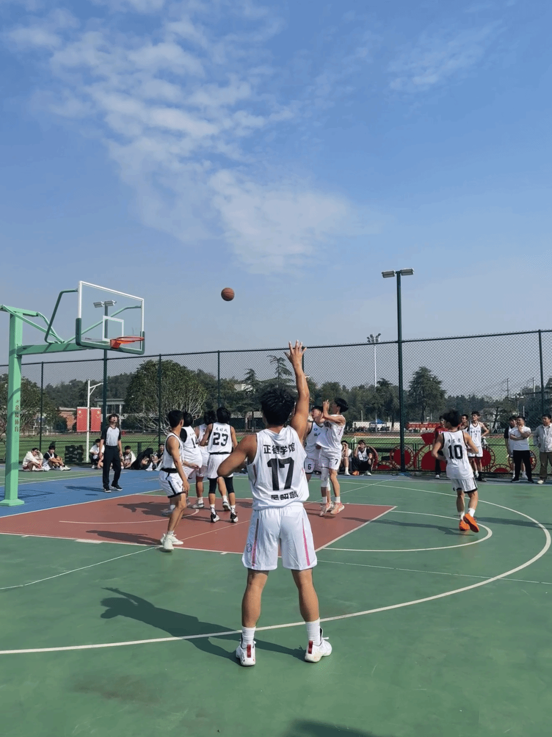 雷锋书院直属党支部副书记黎红梅老师宣布“新生杯”篮球赛开幕并为本次赛事开球。双方球员迅速进入状态,他们运球突破、传球配合、投篮得分,每一个动作都充满了青春的活力与竞技的热血。