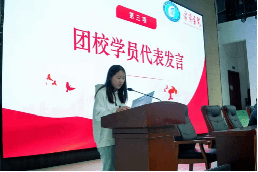 会议第二项,24级新生代表蒋嘉岚同学发言。蒋嘉岚表示,作为团校成员,我们要珍惜学习机会,提升自身素质,学习雷锋精神,积极参加各项社会实践活动,以饱满的热情和坚定的信念投入到团校培训,在学习中磨炼意志,在实践中砥砺前行,为共青团事业贡献出自己的力量。