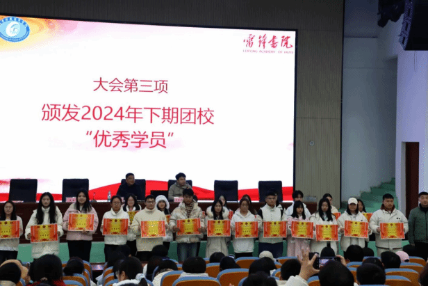 在全场热烈的掌声中,首先进行的是团校优秀干部的表彰,数位优秀干部依次走上领奖台,校领导为他们颁发荣誉奖状,并合影留念。这些优秀干部在团课学习期间表现出色,无论是理论学习还是实践活动,都展现出高度的积极性和卓越的领导力,因此被授予“优秀干部”称号。他们是全体学员学习的榜样。接下来进行的是团校优秀成员的表彰,优秀学员凭借在团课学习中的积极表现、深刻思考与出色实践,脱颖而出荣获“优秀学员”称号;他们在领奖台上展现出的青春风采与自信担当,成为全体学员学习的榜样。