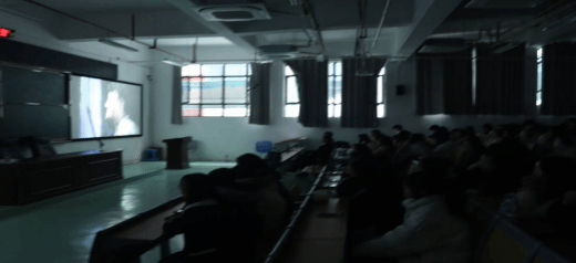 (学生们观看《正正的世界》电影)