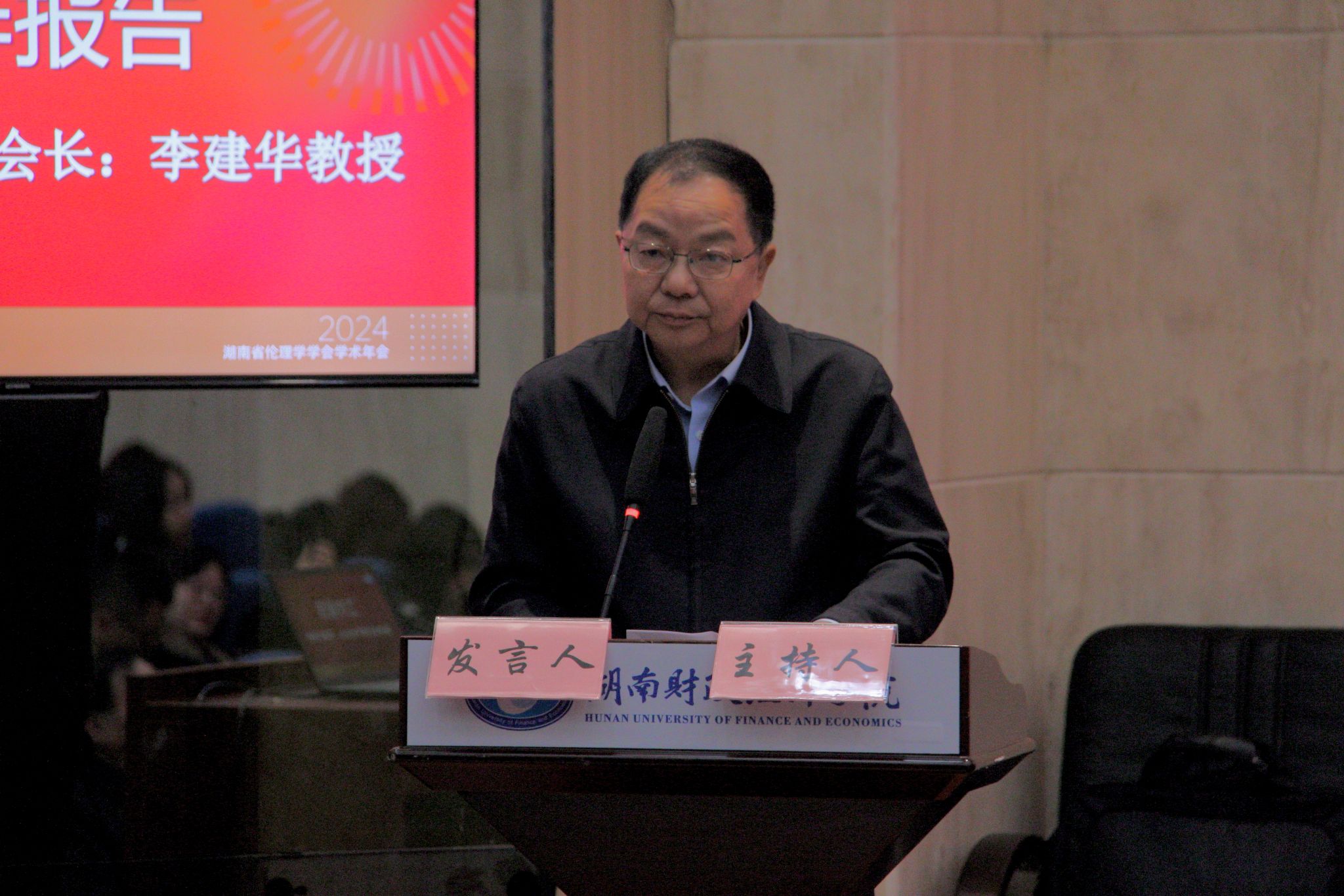 湖南省伦理学学会会长李建华教授向大会作工作报告