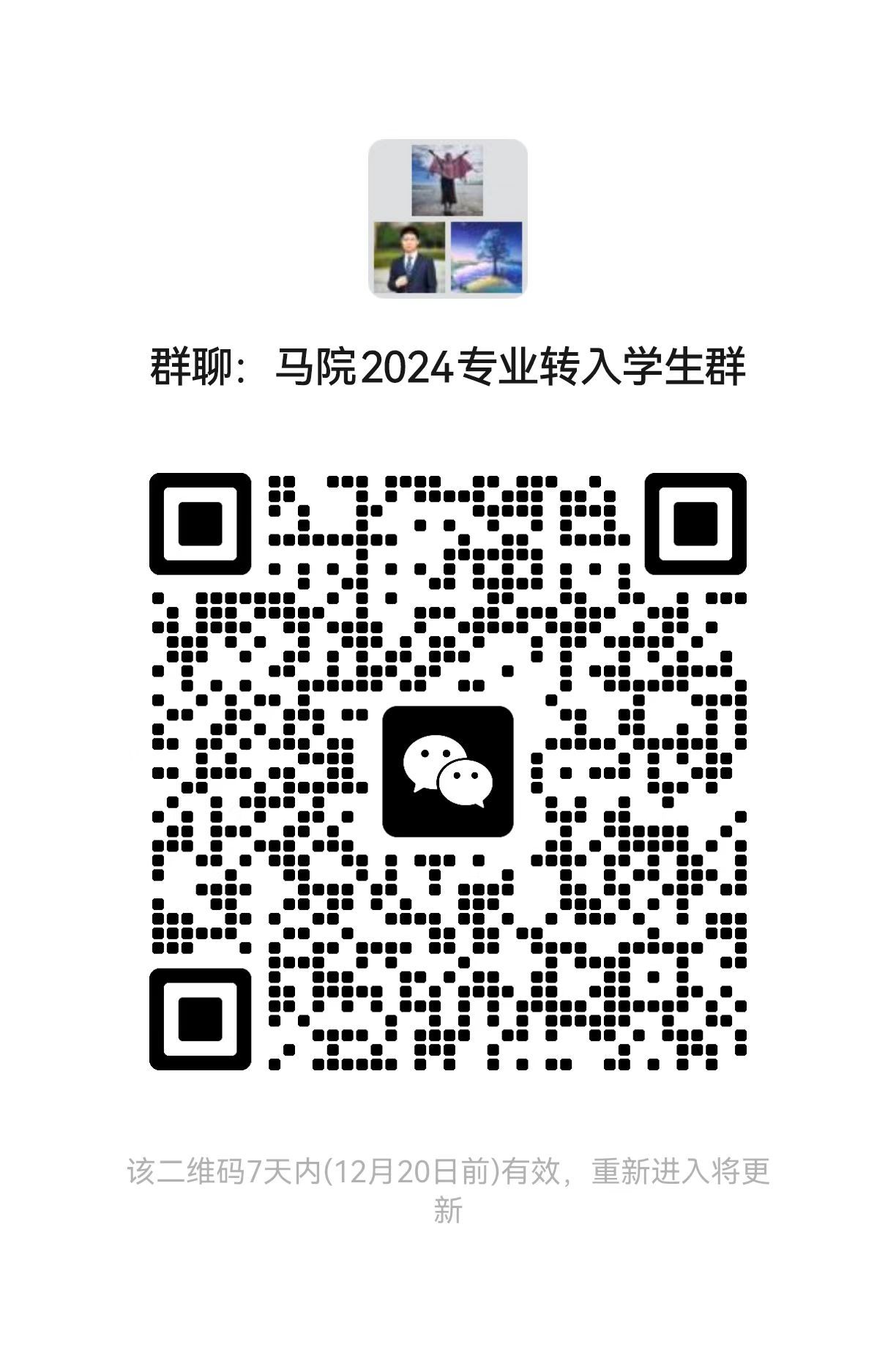 2、申请转入我院的学生于2024年12月16日前将《304永利集团登录入口学生转专业申请表》提交至当前所在学院;所在学院审核同意后,于2024年12月18日前转交马克思主义学院教务办。拟转入我院的学生提交申请表后,加入下列微信群(拟申请转出马克思主义学院的学生不要加入),并随时关注该群有关转专业的通知(本群只用作通知拟申请转入我院学生的转专业相关事项,不得用于交流其他任何事项)。