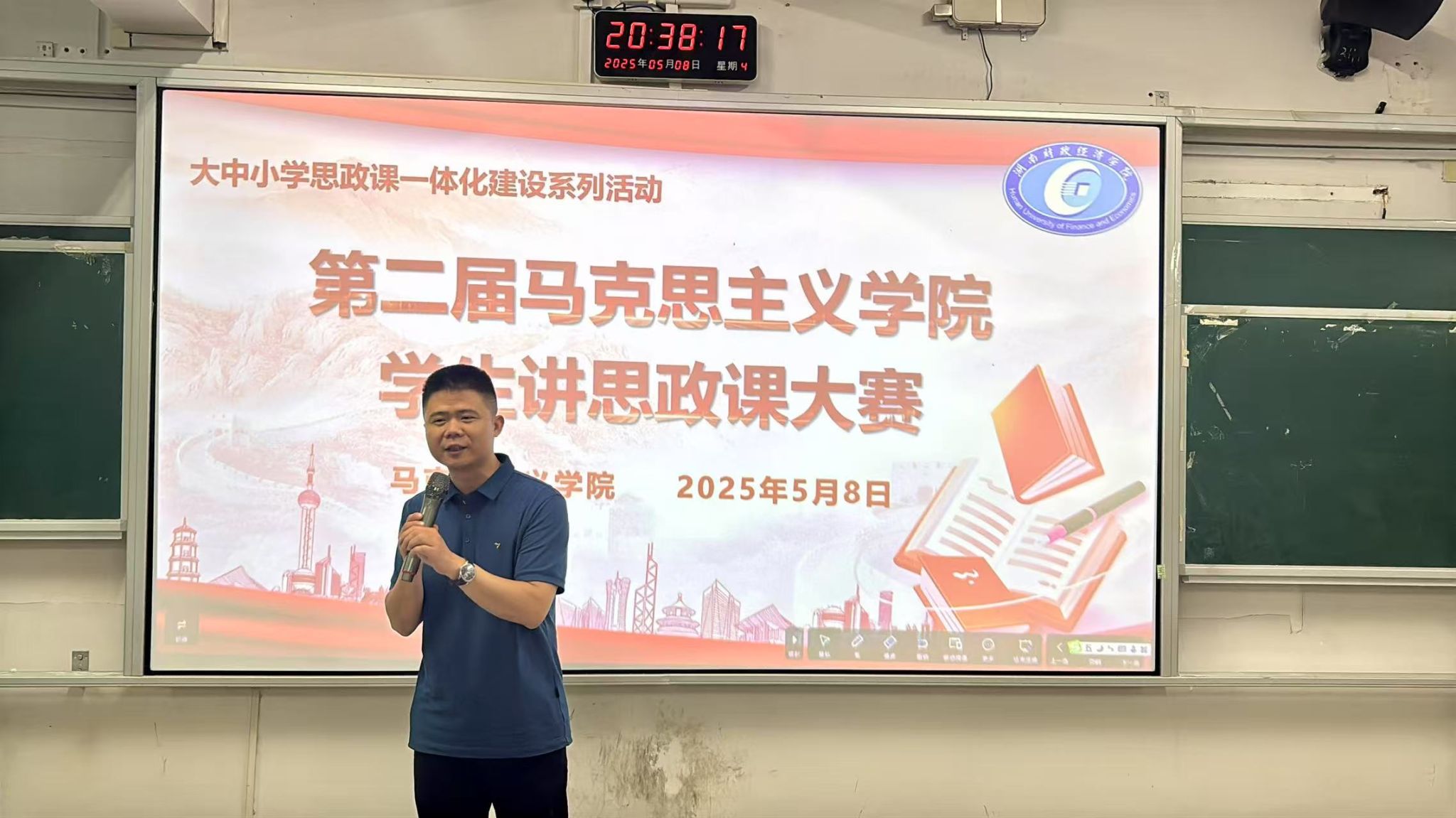 为落实习近平总书记“思政课程要坚持理论性与实践性相统一”的重要指示,扎实推进大中小学思政课一体化建设,马克思主义学院第二届大学生讲思政课比赛于5月8日晚在主校区3111教室顺利举办。
