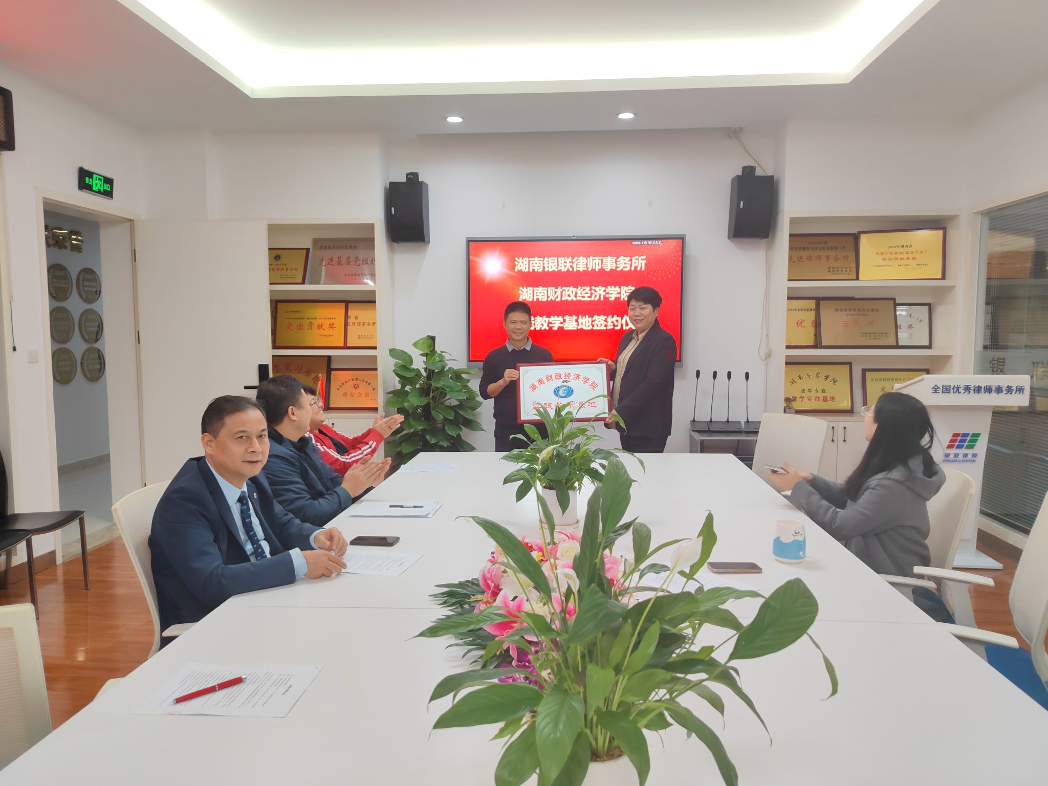 10月27日下午,马克思主义学院与湖南银联律师事务所签订《实践教学基地协议》。