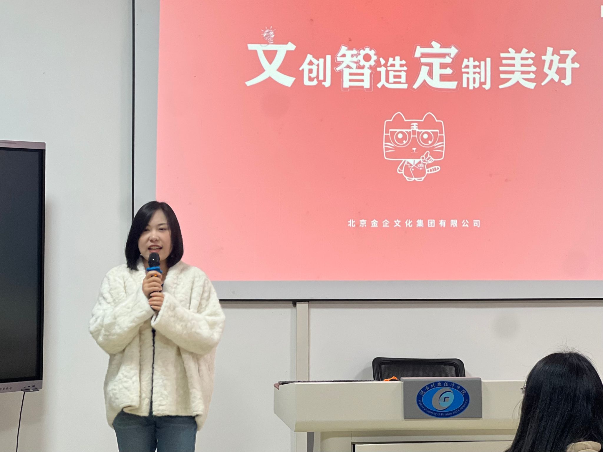 宣讲环节中,金企集团智造板块综合副总监兼玩具事业部副总监程雁围绕公司“文创智造,定制美好”的核心使命,从集团发展历程、四种专业能力、六种业务模式、企业经营产品四大模块,全面细致地讲解了公司现状与发展前景。随后,她详细介绍了公司当前的岗位招聘需求方向,并着重强调公司将为不同岗位的实习生量身定制培养方案,助力职场新人快速完成角色转变、实现能力提升。