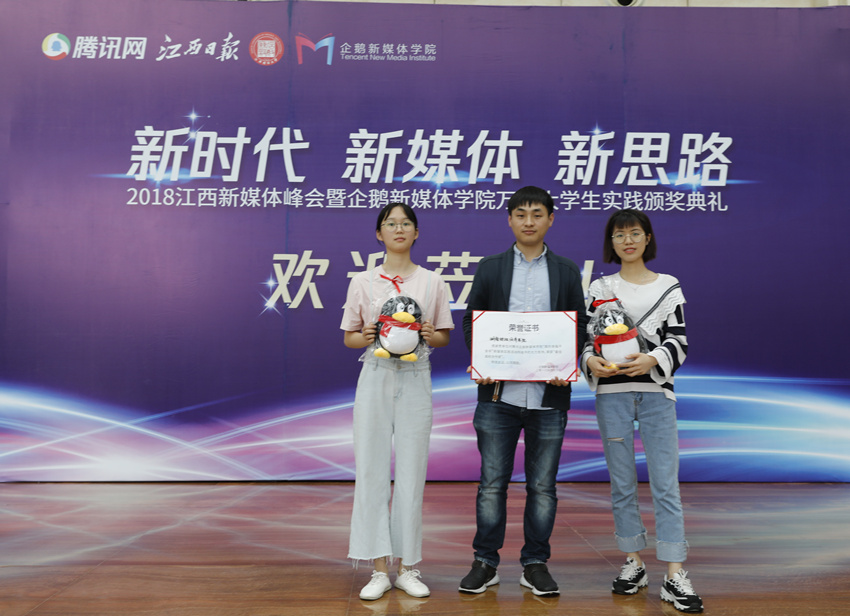 (本网讯)4月13日,腾讯企鹅新媒体学院大型新媒体实践活动颁奖典礼在南昌江西日报社举行,永利荣获“我的幸福平安年”万名大学生新媒体日志活动最佳高校合作奖。人文与艺术学院网络与新媒体系负责人何昱率学生代表参加了此次活动。